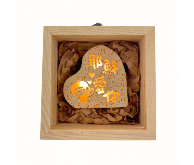 木盒石頭燈-耶穌愛你