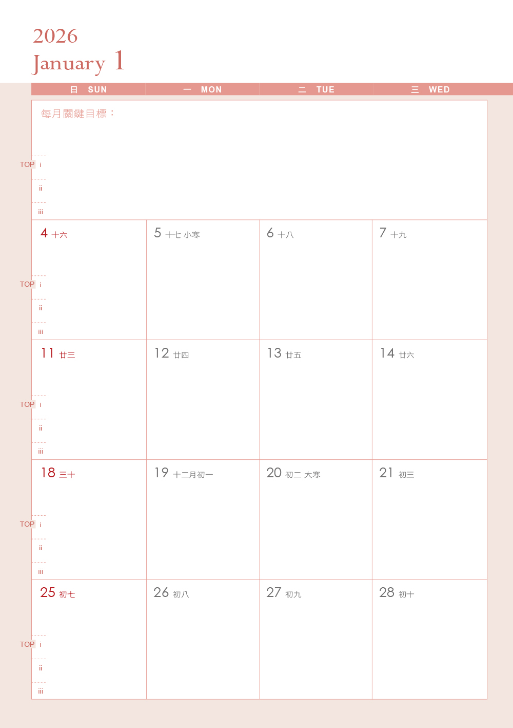 設下「每月關鍵目標」,填入該月的工作任務、生活任務"